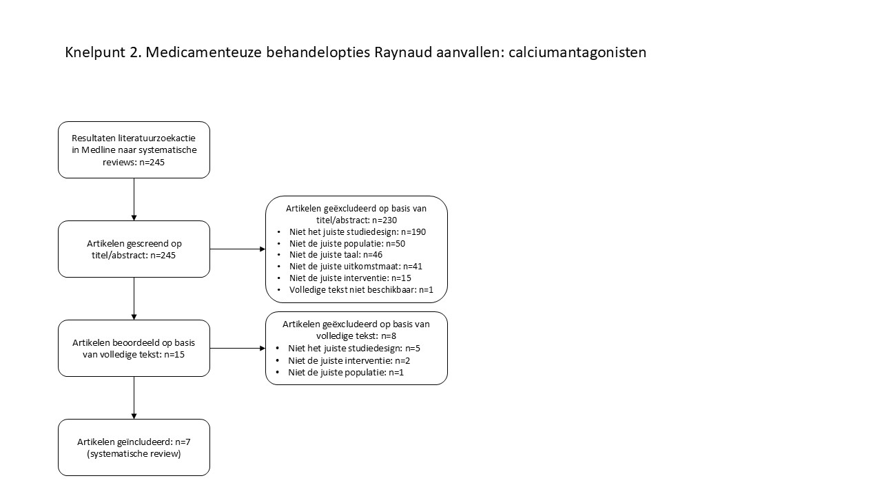 De gevonden literatuur behandelt veelal patiënten met systemische sclerose; de richtlijnwerkgroep acht de resultaten daarvan ook toepasbaar op andere reumatische aandoeningen met het secundair fenomeen van Raynaud op basis van vasculopathie.