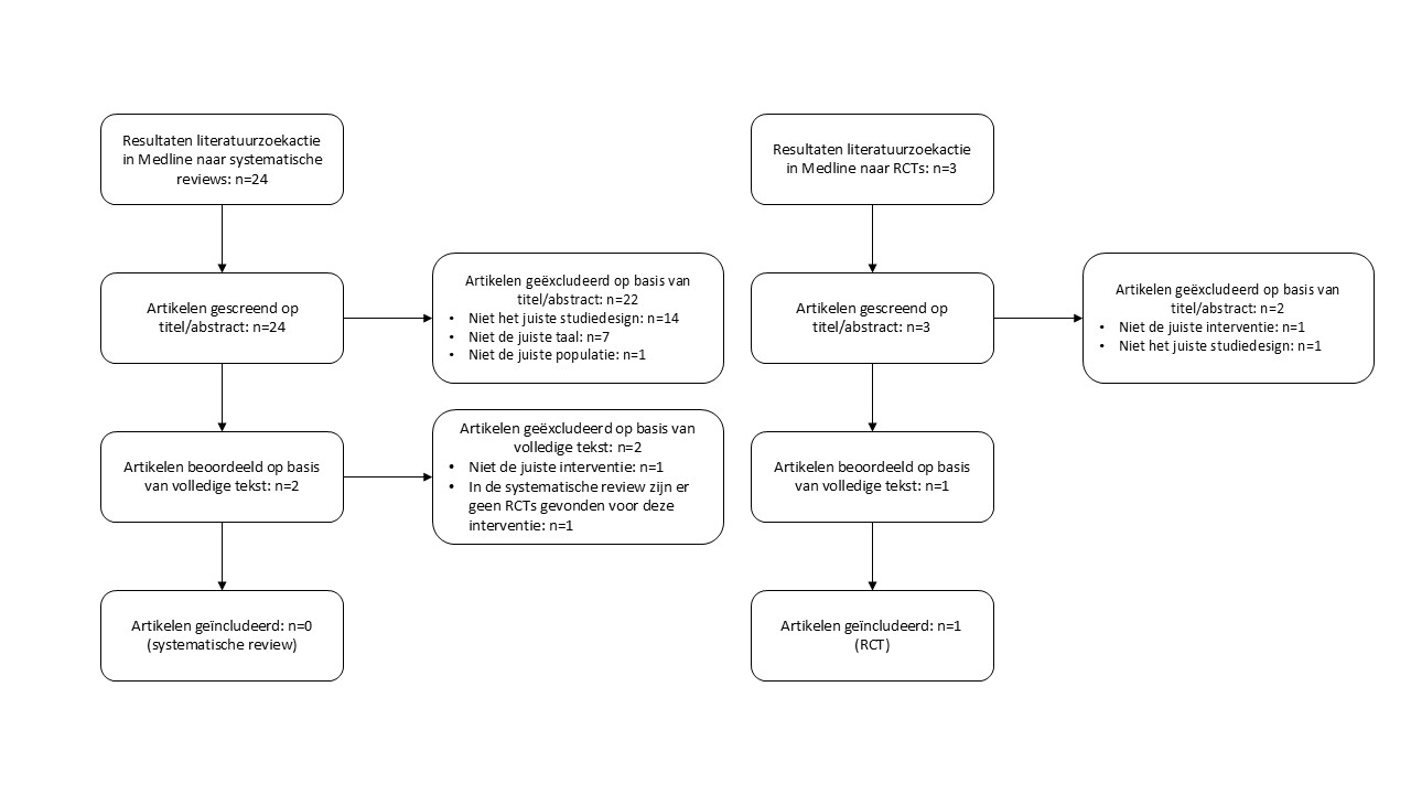 Voor elke medisch inhoudelijke uitgangsvraag zijn PICO’s uitgewerkt binnen de richtlijnwerkgroep, waarna het literatuuronderzoek is uitgevoerd. Specificaties hiervan zijn beschreven in de betreffende hoofdstukken per uitgangsvraag. Over het algemeen is gezocht in PubMed, waarbij gezocht is naar combinaties van gecontroleerde trefwoorden en vrije tekst. Daarnaast is de literatuurselectie uitgevoerd met tevoren vastgestelde selectiecriteria in twee stappen: eerst op basis van titel en abstract en daarna op basis van de volledige tekst. De geïncludeerde artikelen zijn beoordeeld op kwaliteit en inhoud en samengevat in tabellen met studiekarakteristieken en beschreven in de tekst van de hoofdstukken. De kracht van het wetenschappelijke bewijs is beoordeeld volgens de GRADE methodiek.(4, 5) GRADE evidence profielen, gemaakt met de guidelinedevelopment tool per uitgangsvraag zijn weergegeven (zie de betreffende hoofdstukken). Op basis van de evidence zijn conclusies geformuleerd, voorzien van een gradering volgens de GRADE methodiek. De betekenis van deze gradering is als volgt: