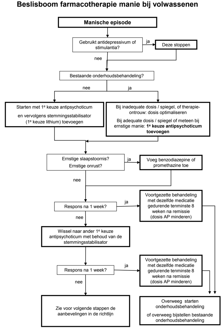 Zie ook beslisboom 6.1 Behandeling manische episode bij volwassenen.