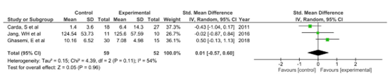 The meta-analysis by Gomez-Cuaresma (2021) on individuals with stroke included three small sampled trials on passive ROM showing a standardized mean difference of 0.01 (95% CI -0.57 to 0.60).