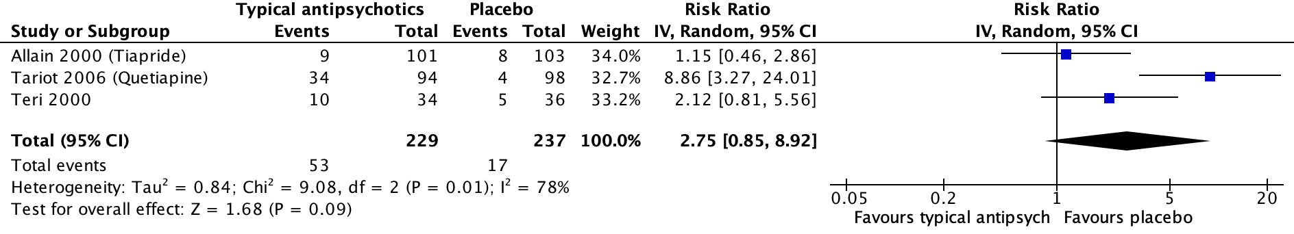 Intervention: typical antipsychotics; Comparator: Placebo