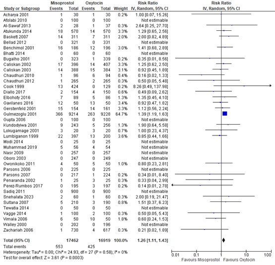 Source: Acharya 2001, Adanikin 2013, Afolabi 2010, Alwani 2014, Amin 2014, Atukunda 2014, Baskett 2007, Bellad 2012, Benchimol 2001, Bhatti 2014, Bugalho 2001, Burman 2021, Caliskan 2002, Caliskan 2003, Chaudhuri 2010, Chaudhuri 2012, Cook 1999, Dasuki 2002, Diallo 2017, Diop 2016, Dutta 2016, Elbohoty 2016, Fazel 2013, Firouzbakht 2013, Gavilanes 2016, Gerstenfeld 2001, Gulmezoglu 2001, Gupta 2006, Karkanis 2002, Kundodyiwa 2001, Lokugamage 2001, Lumbiganon 1999, Mishra 2023, Mukta 2013, Musa 2015, Nankaly 2016, Narrey 2023, Nasr 2009, Oboro 2003, Othman 2016, Owonikoko 2011, Pakniat 2015, Parsons 2006, Parsons 2007, Penaranda 2002, Perez-Rumbos 2017, Rajaei 2014, Shady 2017, Shrestha 2011, Singh 2009, Snehalata 2023, Sultana 2007, Tewatia 2014, Vagge 2014, Vimala 2006, Walley 2000, Zachariah 2006. |