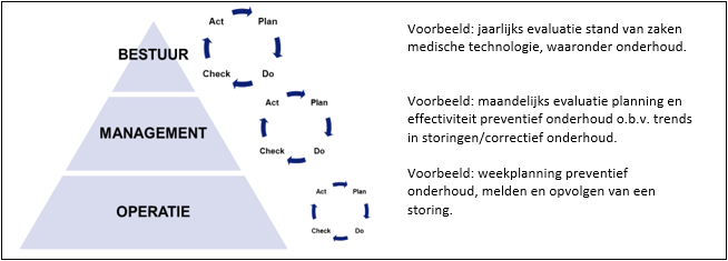 Figuur 2: Voorbeeld hoe verbetercycli op verschillende niveaus kunnen samenhangen (preventief onderhoud)