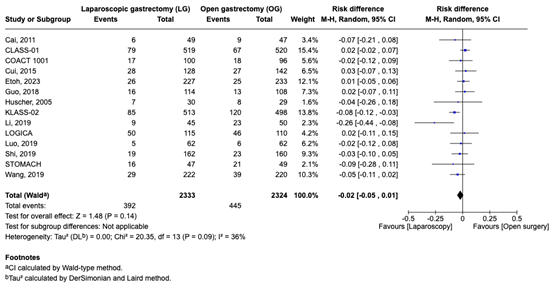 R0-resectie werd gerapporteerd in 5 studies (KLASS-02; Li, 2019; COACT- 1001; LOGICA Jiang, 2022; STOMACH). Het risicoverschil was 0.01 (95% CI, -0.02 tot 0.03). Dit verschil werd als niet klinisch relevant beschouwd.
