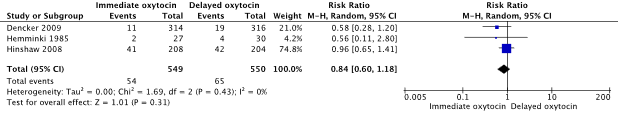Table 1. Perinatal death, immediate oxytocin augmentation versus delayed oxytocin augmentation.